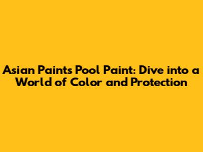 Asian Paints Pool Paint: Your Guide To A Stunning Pool