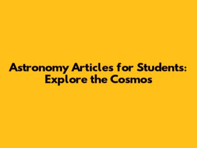 Astronomy Articles For Students: Explore The Cosmos
