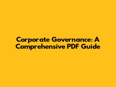 Corporate Governance: A Comprehensive PDF Guide
