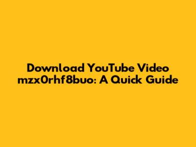 Download YouTube Video Mzx0rhf8buo: A Quick Guide