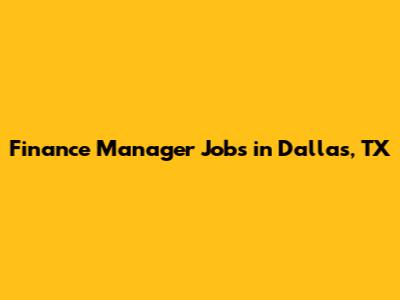 Finance Manager Jobs In Dallas, TX