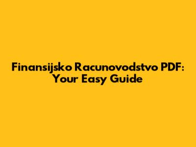 Finansijsko Racunovodstvo PDF: Your Easy Guide