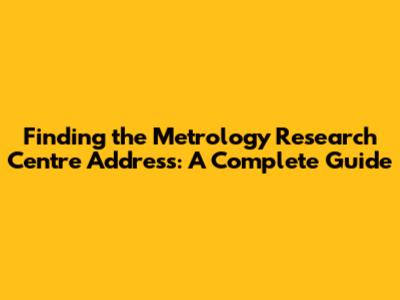 Finding The Metrology Research Centre Address: A Complete Guide