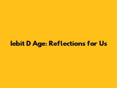 Why Reflecting on Iebit D Age Matters