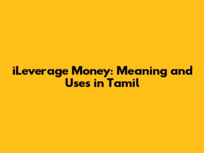 ILeverage Money: Meaning And Uses In Tamil