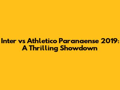 Inter Vs Athletico Paranaense 2019: A Thrilling Showdown