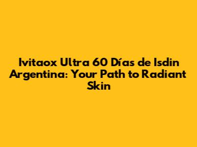 If you're in Argentina and ready to experience the benefits of Ivitaox Ultra, you may be wondering where to purchase it. Ivitaox Ultra 60 DÃas de Isdin Argentina is available at select pharmacies and skincare retailers. It's always a good idea to purchase from reputable sources to ensure you're getting a genuine product.
