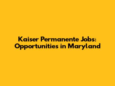 Kaiser Permanente Jobs: Opportunities In Maryland