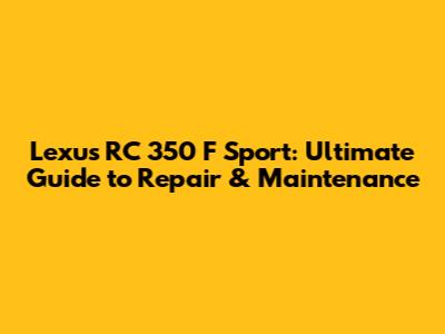 Lexus RC 350 F Sport: Ultimate Guide To Repair & Maintenance