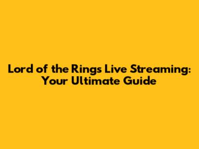 Lord Of The Rings Live Streaming: Your Ultimate Guide