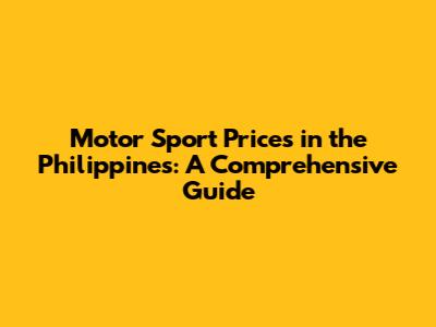 Motor Sport Prices In The Philippines: A Comprehensive Guide