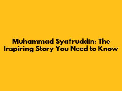 Muhammad Syafruddin: The Inspiring Story You Need To Know