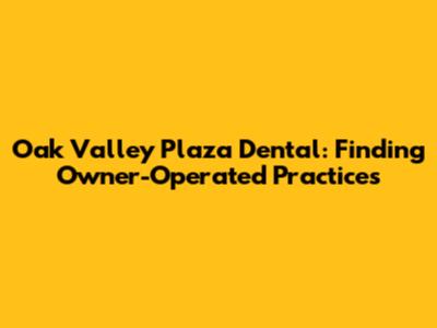 Hey guys! Are you looking for top-notch dental care at Oak Valley Plaza? One of the best ways to ensure you're getting personalized and dedicated service is by finding a dental practice that's actually owned and operated by the dentist themselves. In this article, we'll dive into why choosing an owner-operated dental practice can make a huge difference in your dental experience. We will also explore how to find these gems within Oak Valley Plaza, so you can get the best possible care with a personal touch.