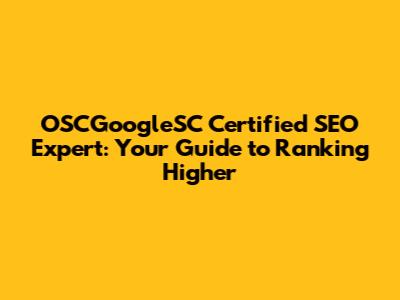 OSCGoogleSC Certified SEO Expert: Your Guide To Ranking Higher