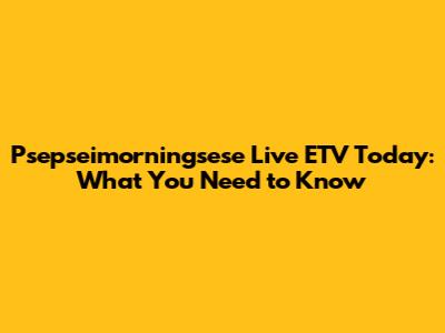 Psepseimorningsese Live ETV Today: What You Need To Know