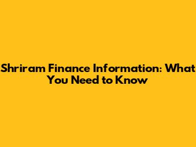 Shriram Finance Information: What You Need To Know