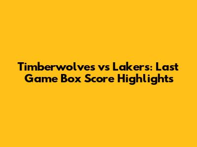 Timberwolves Vs Lakers: Last Game Box Score Highlights