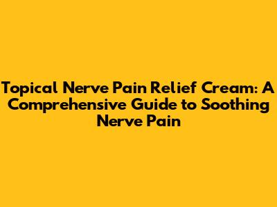 Topical Nerve Pain Relief Cream: Your Comprehensive Guide