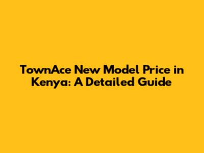 TownAce New Model Price In Kenya: A Detailed Guide