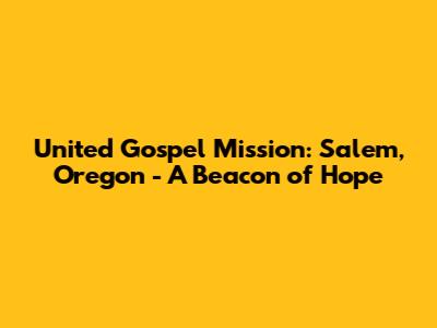 United Gospel Mission: Salem, Oregon - A Beacon Of Hope