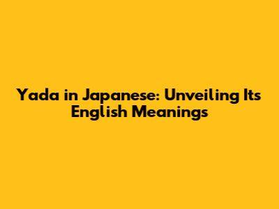 Yada In Japanese: Unveiling Its English Meanings