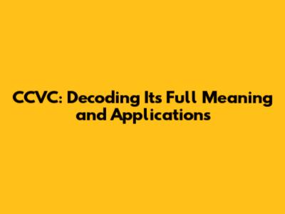 CCVC: Decoding Its Full Meaning And Applications