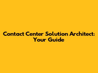 Contact Center Solution Architect: Your Guide