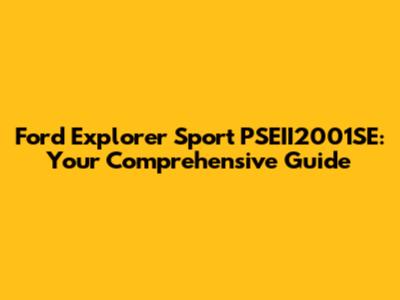 Ford Explorer Sport PSEII2001SE: Ultimate Guide