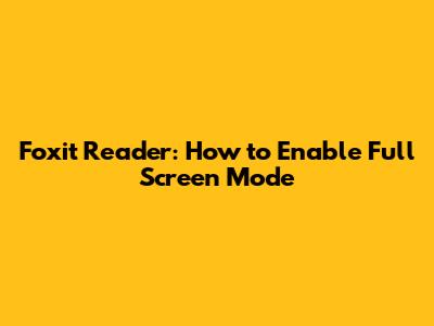 Foxit Reader: How To Enable Full Screen Mode