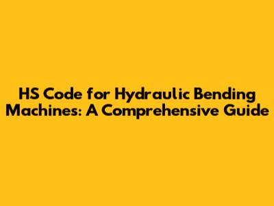HS Code For Hydraulic Bending Machines: A Comprehensive Guide