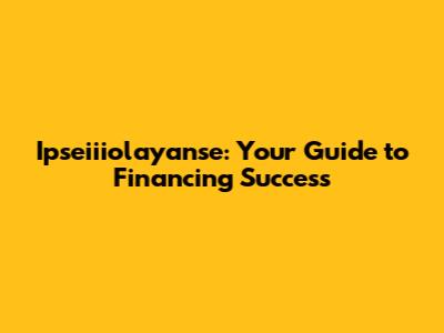 Ipseiiiolayanse: Your Guide To Financing Success