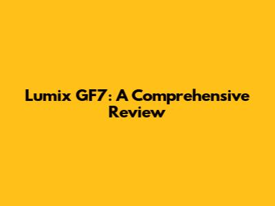 Lumix GF7: A Comprehensive Review