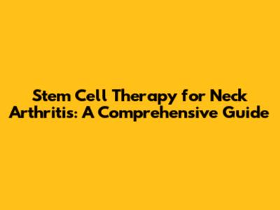Stem Cell Therapy For Neck Arthritis: A Comprehensive Guide